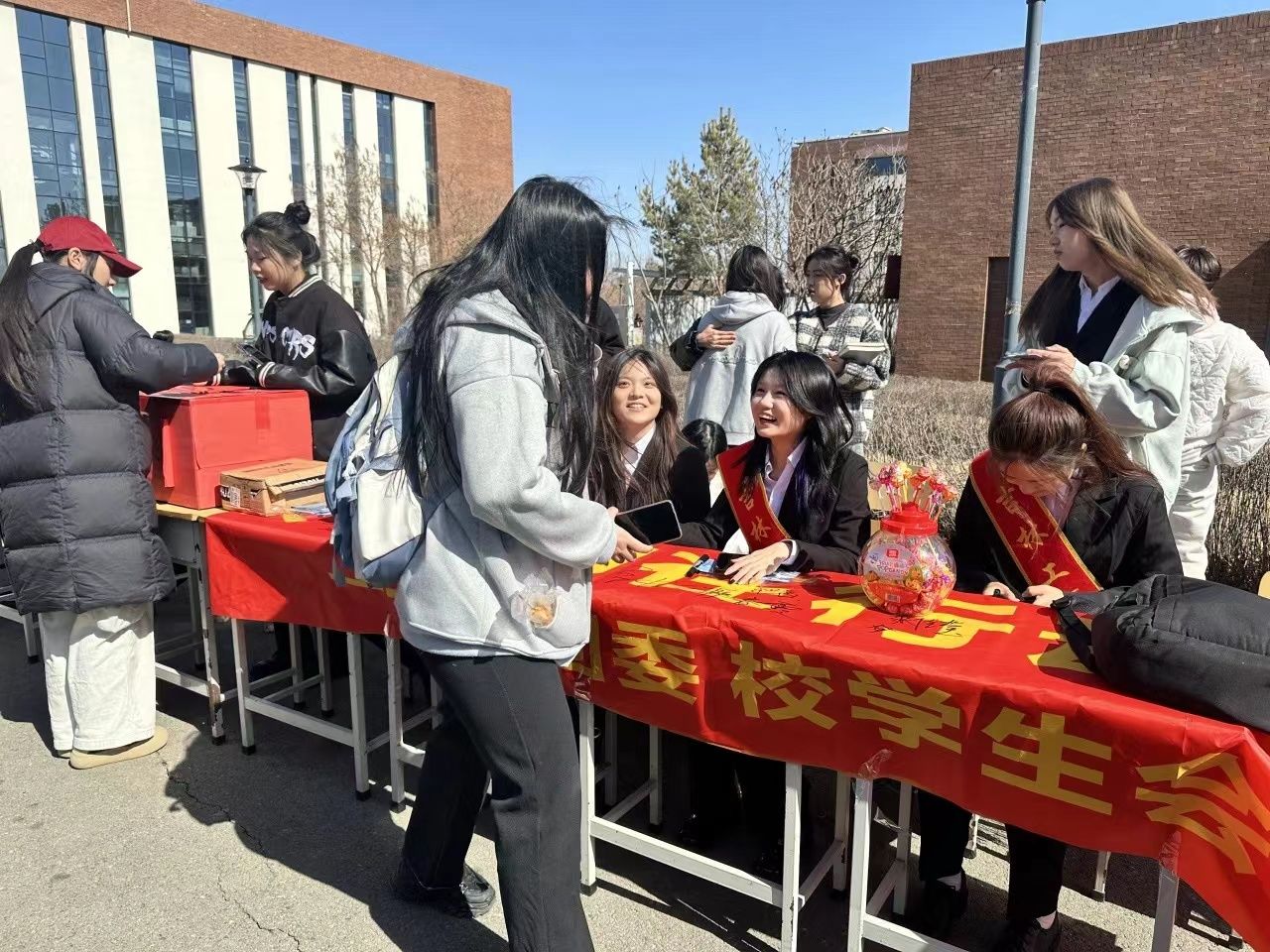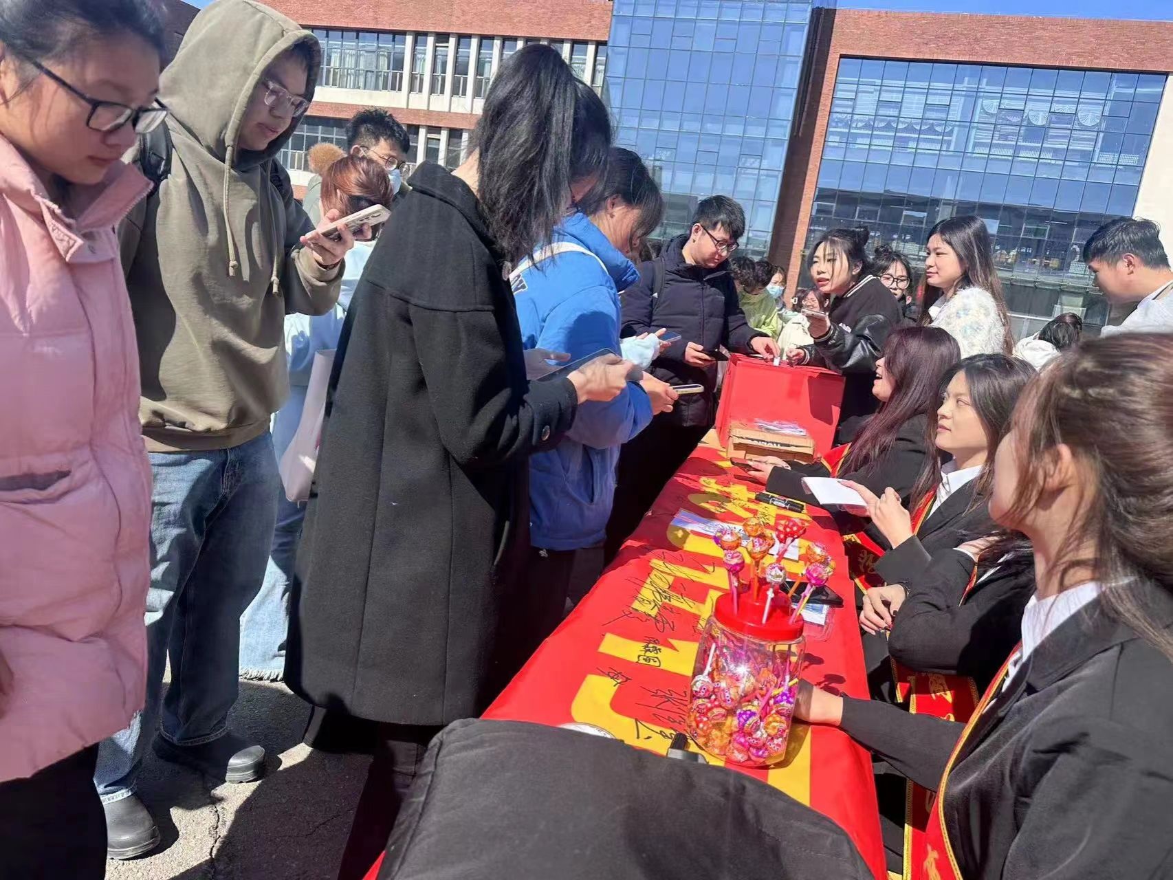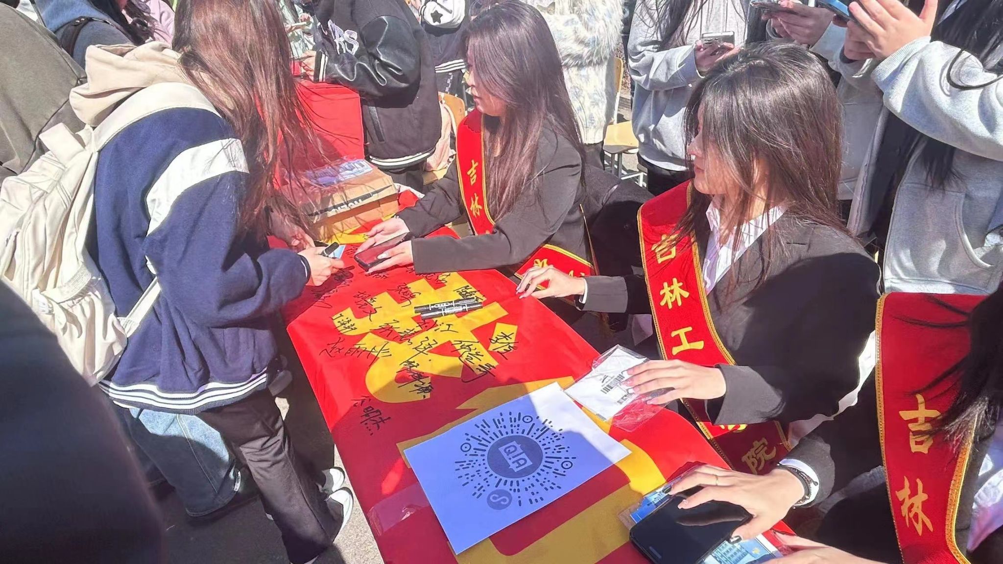 活动开始,吉林工商学院大学生艺术团的同学们带来了歌舞节目表演,同学们到达活动场地参与答题后进行抽奖,奖品有帆布包、水杯、钥匙扣、明信片、棒棒糖等,最后每一个参与的同学在本次活动的条幅上都签上了自己的名字。