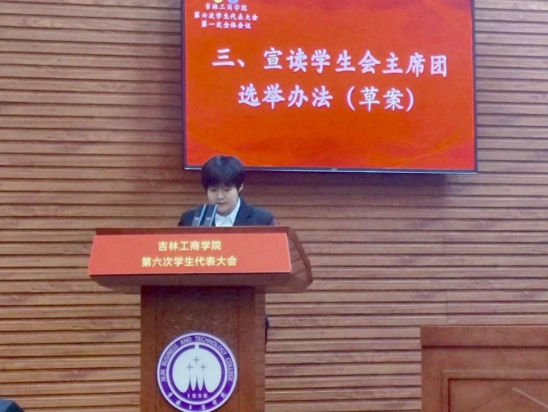 学代会筹备工作委员会成员迟昊宣读第六次学生代表大会学生会主席团选举办法