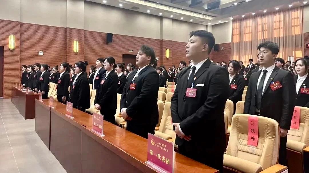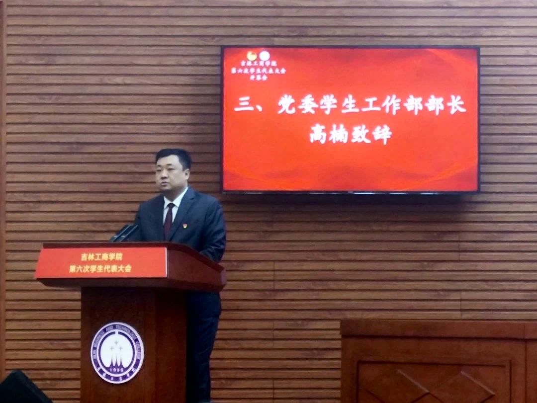 11月28日,吉林工商学院第六次学生代表大会在学校第二教学楼A区429报告厅举行。学校党委学工部部长高楠、团委书记由广全、各教学学院学团办主任、副主任以及团委全体工作人员出席大会,154名学代会正式代表参加大会。本次大会由团委书记由广全主持。