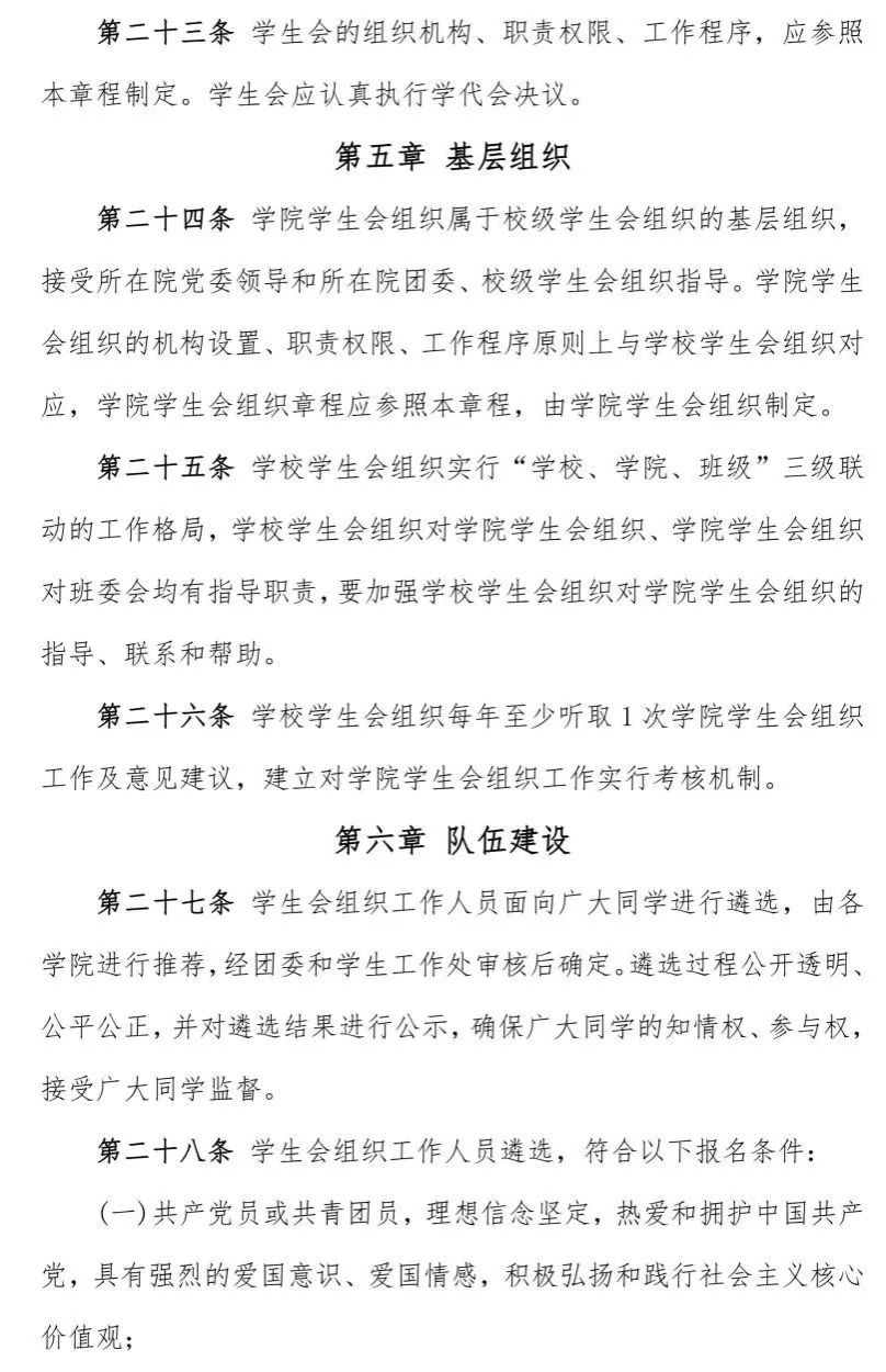 为落实共青团中央、教育部、全国学联联合下发的《关于推动高校学生会(研究生会)深化改革的若干意见》,并结合《关于巩固高校学生会(研究生会)改革成果的若干措施》文件要求,接受广大师生监督,现将我校2023—2024学年学生会改革情况公开如下。