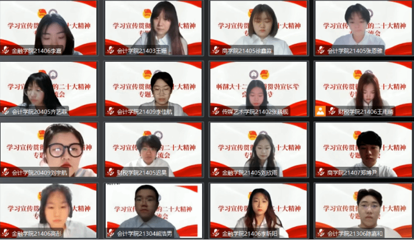 为深入学习宣传贯彻党的二十大精神,深刻领会和把握大会的精神实质及丰富内涵,同时推动广大团员青年努力成长为有理想、敢担当、能吃苦、肯奋斗的新时代好青年,我院团委于2023年2月20日在线上举办了吉林工商学院学习宣传贯彻党的二十大精神专题交流会。