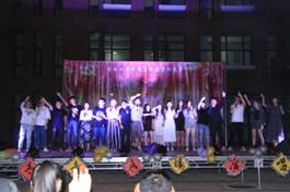 大学生艺术团声乐部于2017年6月13日晚在一教B区露天舞台举办大学生艺术团致青春专场演唱会。现场观众多达500人。